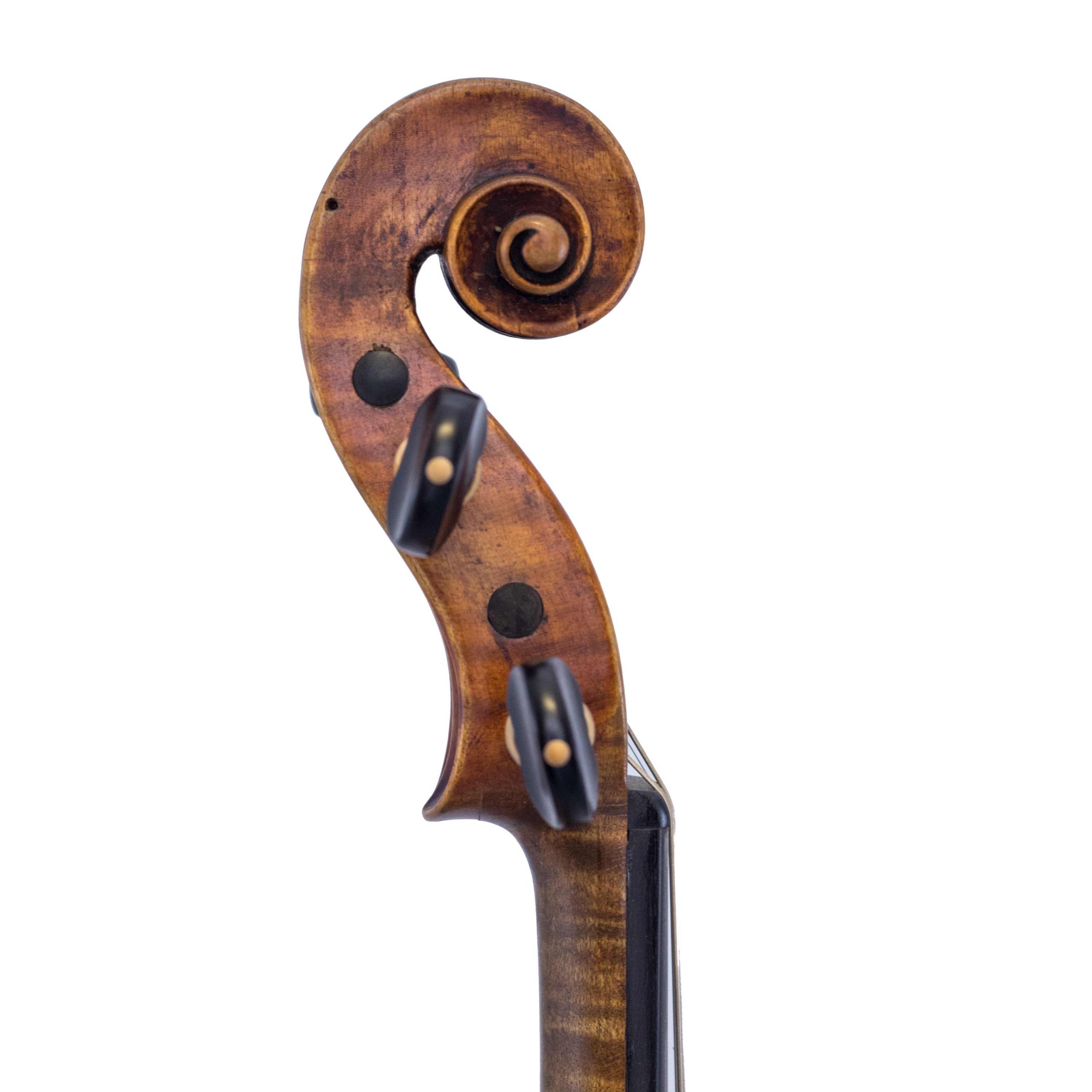 This fine handmade violin from the early 1800’s Germany, following the pattern of Nicolo Amati. Has had several restorations over the many years and is in excellent playing condition. This instrument has excellent projection, with a clean and clear tone.