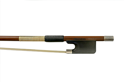 The Hermann Luger Master Bow No Eye features premium horsehair, ebony frog, no eye, silver inlay, and a magnificent Pernambuco shaft for the best playability and appearance.