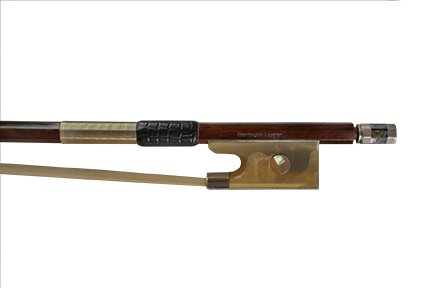 Features the finest select Pernambuco shaft, fully silver-lined white horn frog with pearl eye, beautiful pearl slide, inlaid silver mounting, and pearl inlaid three-part screw. Exceptional handwork, detail, and playability. A very fine bow at an amazing value.