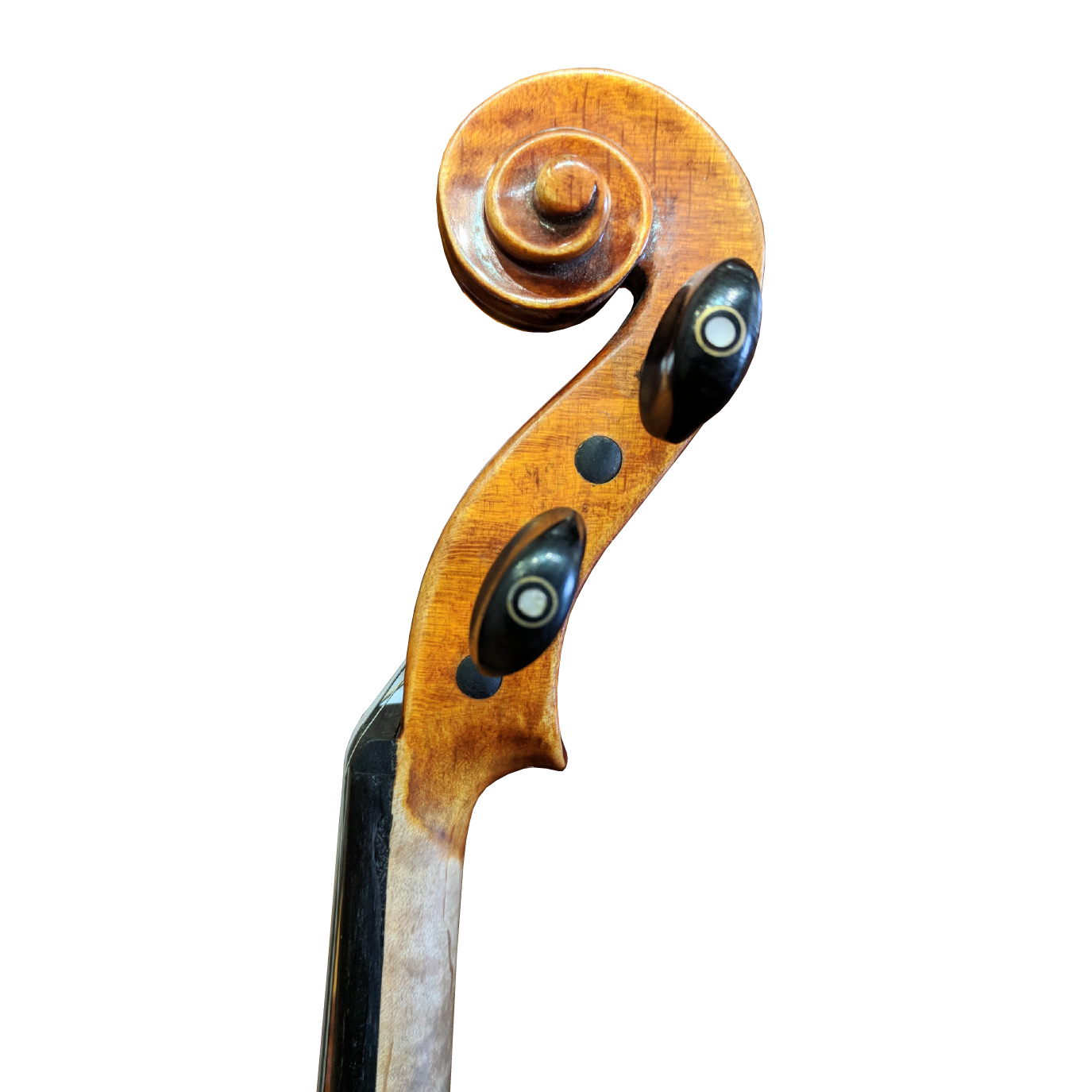 Fine grained spruce and very well-flamed maple back sides and neck. Loft well-seasoned maple make for a beautiful grain and amazing sound. The varnish is a spectacular hand oil varnish showing beautiful antiquing. The result is a superior quality, hand-crafted violin that exhibits exceptional beauty, wonderful playability, and a rich warm powerful tone.