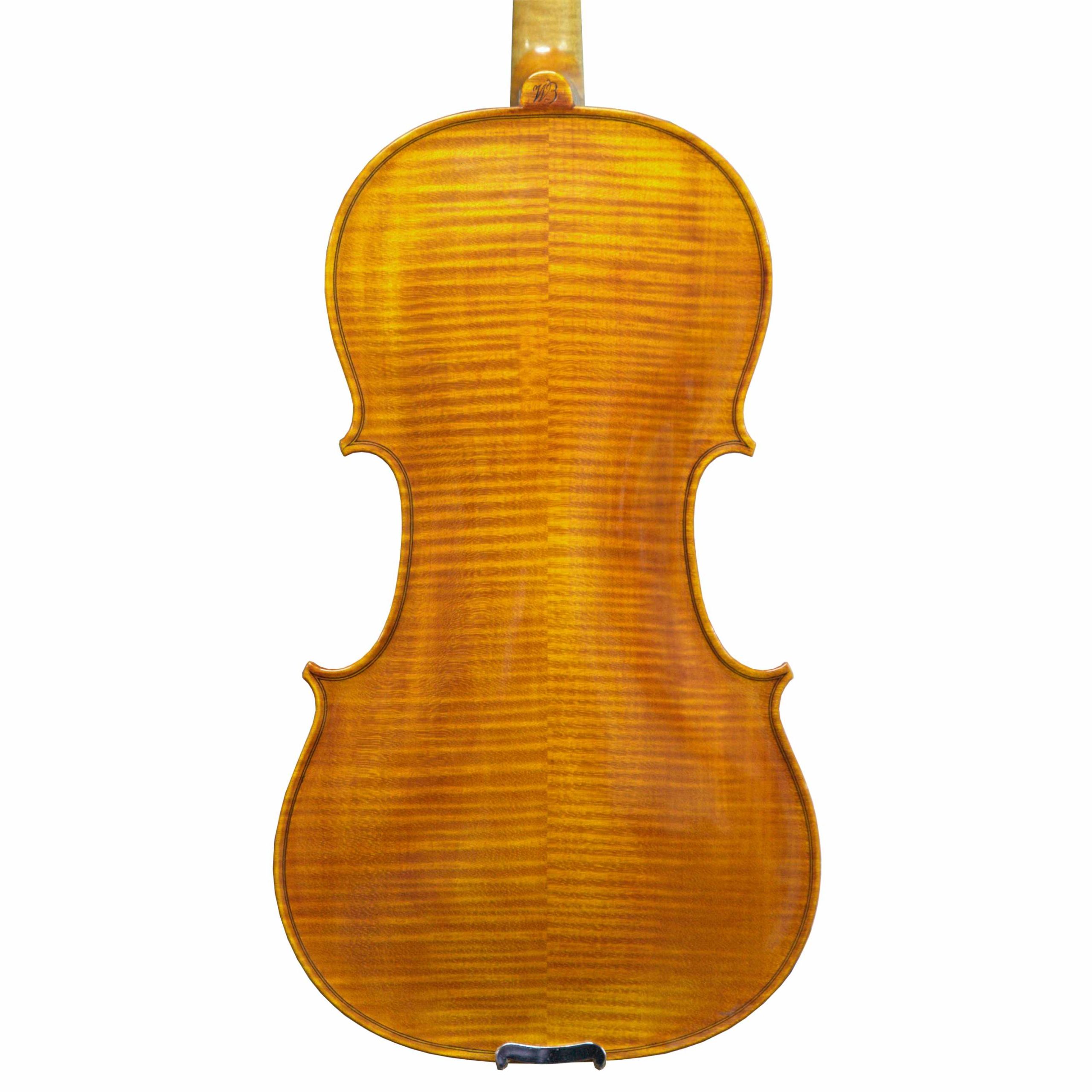 This viola was handcrafted in 1995. and has a comfortable back length of 15 3/4″. Great viola for orchestal playing with a refined, smooth sound.